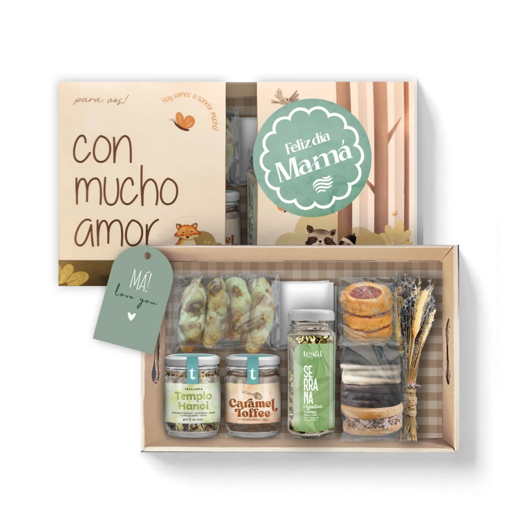Incluye mini bouquet de flores secas y tarjeta de saludo de regalo.