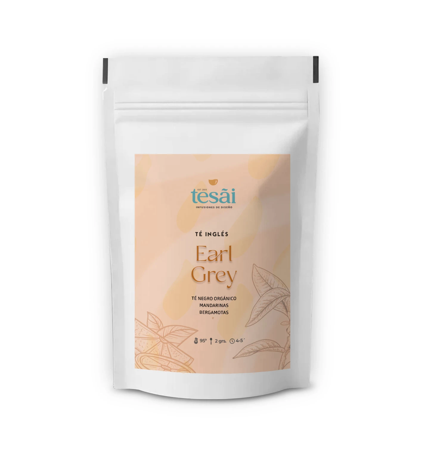 Típico té inglés con un toque especial, compuesto de té negro orgánico en hebras con esencia natural de bergamota y cascaritas de mandarina.