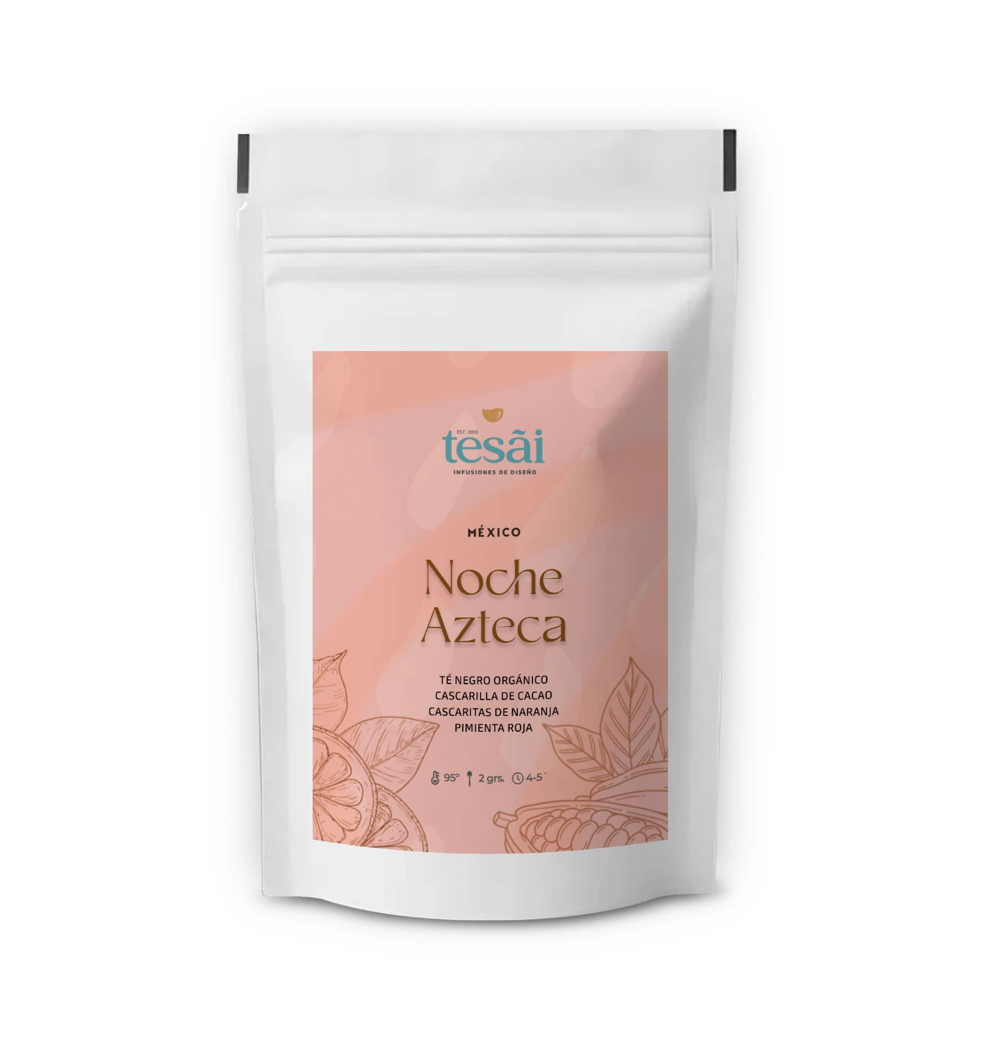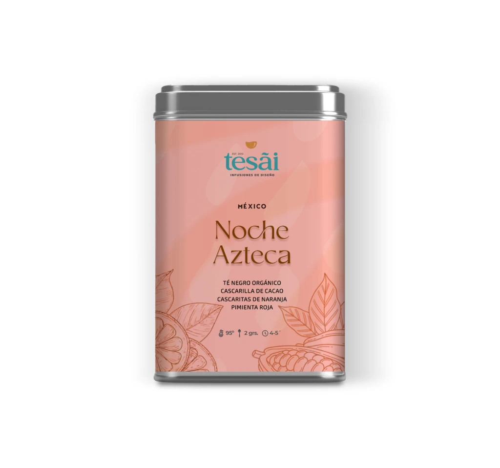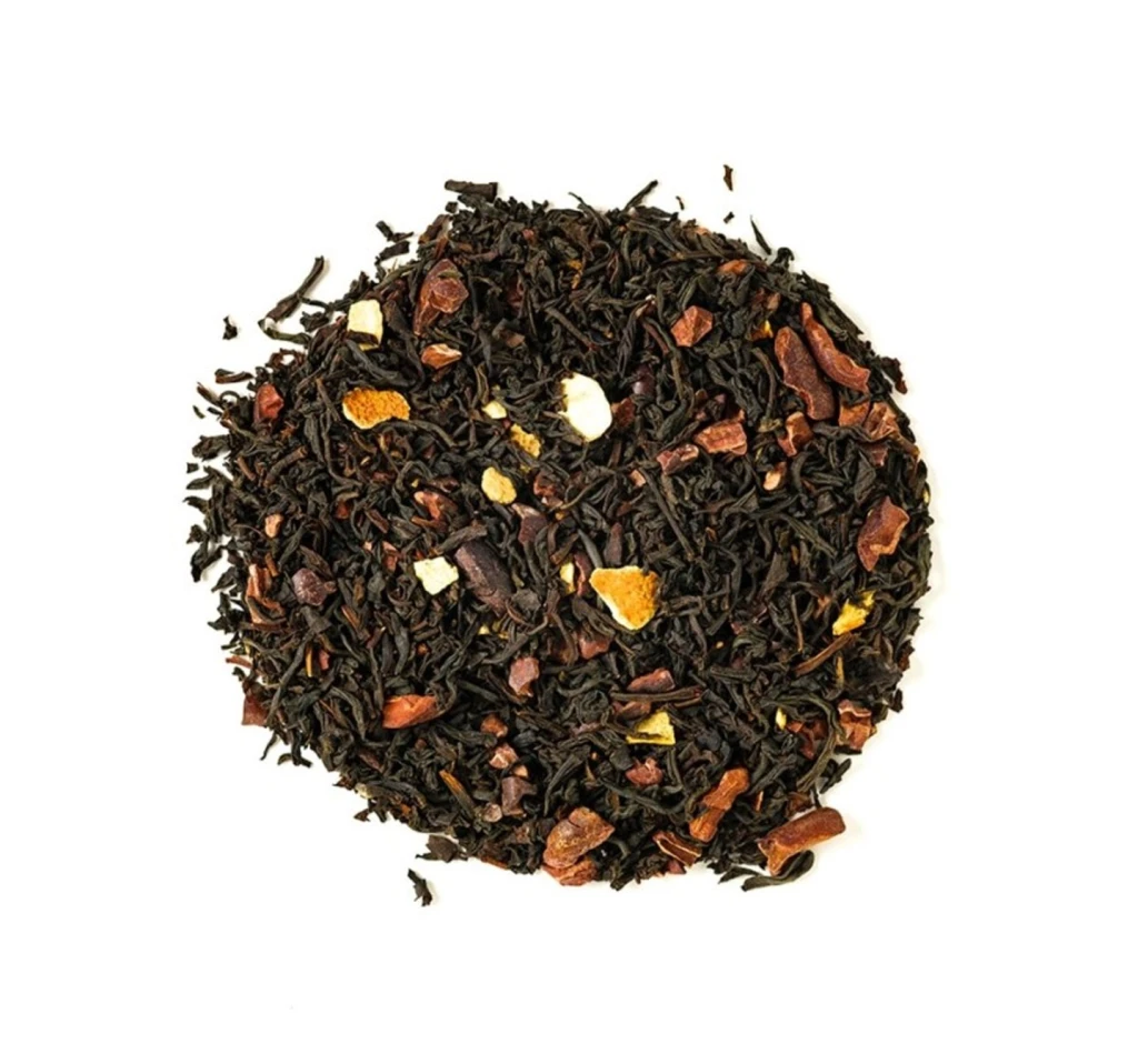 Sabores representantes de México, la combinación perfecta de chocolate, naranja y un toque de pimienta roja, con base de té negro en hebras enteras. Dulce y muy aromático.